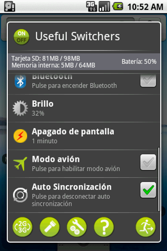 Useful Switchers contiene también una útil opción para iluminar la pantalla de tu Android y usarlo como linterna.